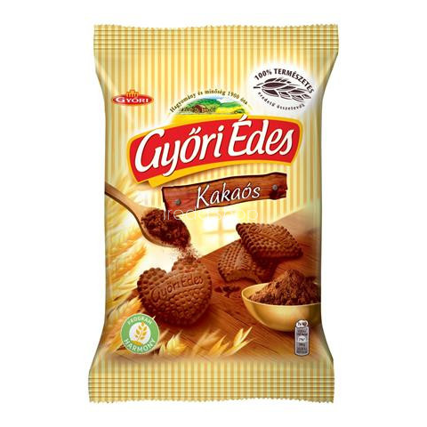 Keksz, 150 g, GYŐRI Győri édes, kakaós A Győri Édes keksz 100%-ban természetes összetevők felhasználásával készül. Receptúrája kizárólag természetes anyagokat tartalmaz, így gondtalanul élvezheti a megszokott édes ízeket. Kiváló minőségű, aranysárgár