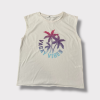 Pálmafás, ujjatlan felső Egyenes szabású, kerek nyakkivágású, elején pálmafás mintával. Hibátlan állapotú.