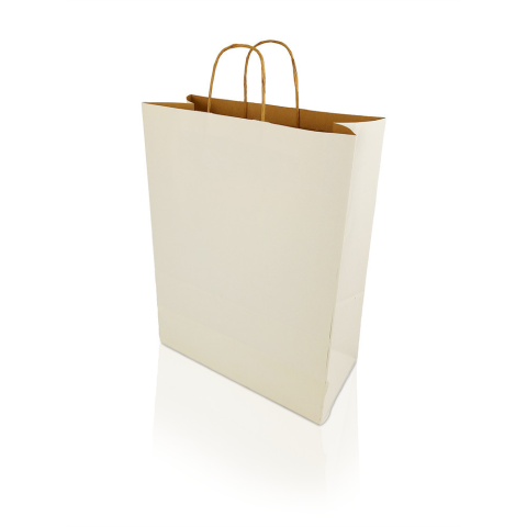 1 kép h-Green Sodrottfüles papírtáska 320x420mm 150mm talp L méret 200 db/doboz, fehér