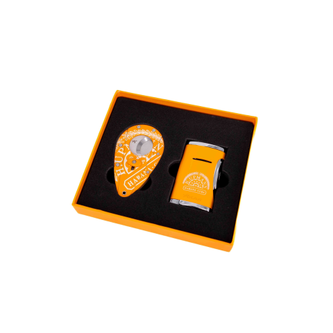 H.Upmann márkájú szivaros szett, amely egy szúrólánggal égő szivaröngyújtót és egy dupla pengés pillangó szivarvágót tartalmaz. A szivarfogyasztók számára nélkülözhetetlen tartozékokból álló készlet a H.Upmann márkára jellemző narancs és fehér színekkel.A Habanos S.A. licencével a XIKAR által készített kiegészítők.A vágó: Alumínium házzal és kiváló minőségű nagy keménységű rozsdamentes acél pengékkel készült. Csepp