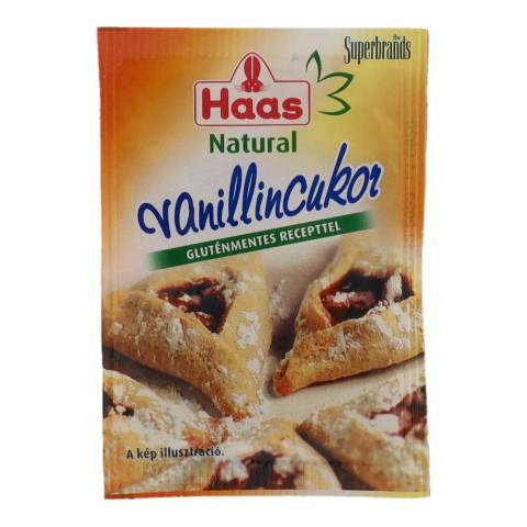 Haas natural vanillincukor 8 g HAAS GLUTÉNMENTES VANILINCUKOR A megújult Haas vaníliás cukor gluténmentes és dupla vanillintartalommal ízesítik süteményeit, desszertjeit. Összetevoi: cukor, aroma (vanillinkristály).