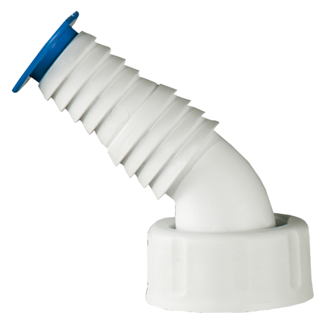 Haas tömlőcsatlakozó - 45° - 1"-os hollandival és kombinált gépcsatlakozóval (1/2" és 3/4") - fehér - ütésálló polipropilén - tömítés - tömítőkorong - vakdugó