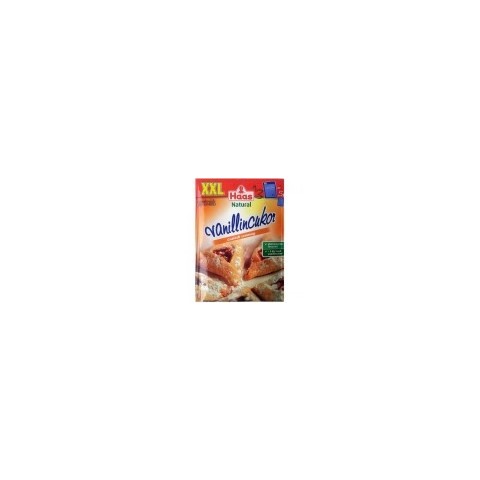Haas natural vanillincukor xxl 40 g HAAS GLUTÉNMENTES VANILINCUKOR XXL. A megújult Haas vaníliás cukor gluténmentes és dupla vanillintartalommal ízesítik süteményeit, desszertjeit. Összetevoi: cukor, aroma (vanillinkristály). XXL kiszerelésben.