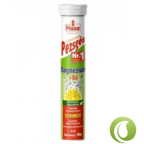 Haas pezsgőtabletta magnézium 20 db HAAS PEZSGŐTABLETTA MAGNÉZIUM Magnéziumra szükség van az egészséges csontok és fogak megfelelő szilárdságához, a szabályos szívműködéshez, ezáltal normalizálja a vérkeringést, de nélkülözhetetlen az idegek, izmok hat