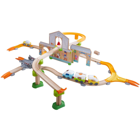 Haba Kullerbü - Játszótéri vasútállomás (1306745001) autópálya és játékautó 1 kép