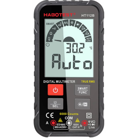 A HT112B egy rendkívül vékony, új generációs intelligens multiméter. Nagyméretű, 2,88 hüvelykes kijelzővel és szilikon gombokkal van felszerelve - egyszerűen és kényelmesen használható. Pontos méré...