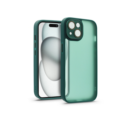 1 kép Haffner Apple iPhone 15 hátlap kameravédő peremmel, lencsevédő üveggel - Variete - sötétzöld