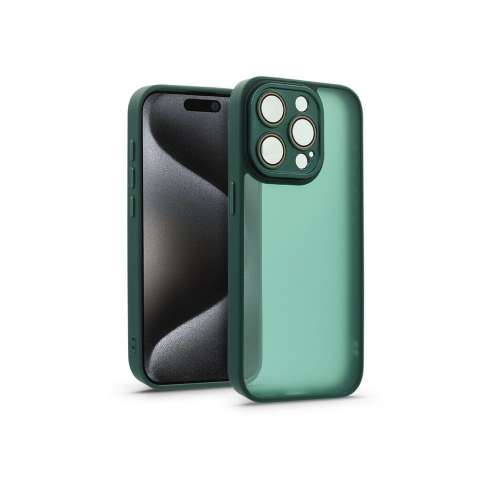 Haffner Apple iPhone 15 Pro hátlap kameravédő peremmel, lencsevédő üveggel - Variete - sötétzöld