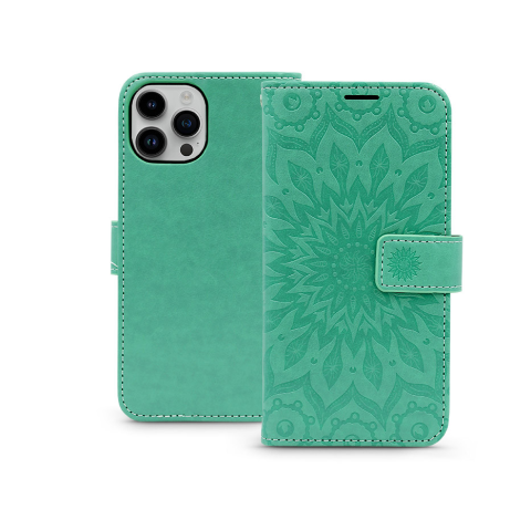Haffner Mezzo Book Flip bőrtok - Apple iPhone 15 - mandala zöld (PT-6785) tok és táska 1 kép