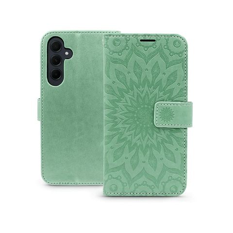 1 kép Haffner Samsung Galaxy A35 5G oldalra nyíló tok, mandala zöld (HF268274)