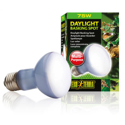 Exo Terra Daylight Basking Spot 75 W- Széles spektrumú nappali spotlámpa terráriumokhoz- Sütkérező helyet hoz létre a hőszabályozáshoz- Növeli a környező levegő hőmérsékletét- UVA sugarakkal stimulálja a szaporodási viselkedést- Egy Daytime Heat lámpával vagy Night Heat lámpával 24 órás ciklusban kombinálhatóSzéels spektrumú nappali spotlámpa Neodímium körtével. A spektrum idális a növények fotoszintéziséhez, az UVA fény pedig hozzájárul a hüllők psz