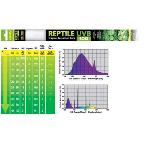 Exo-Terra - fénycső (trópusi) UVB100 (90cm/30W)Ideális minden trópusi és szubtrópusi hüllő számáraOptimális UVB szintBiztosítja a szükséges UVB sugarakat az optimális kalcium-anyagcseréhezAz UVA sugarak serkentik az étvágyat, az aktivitást és a reproduktív viselkedést