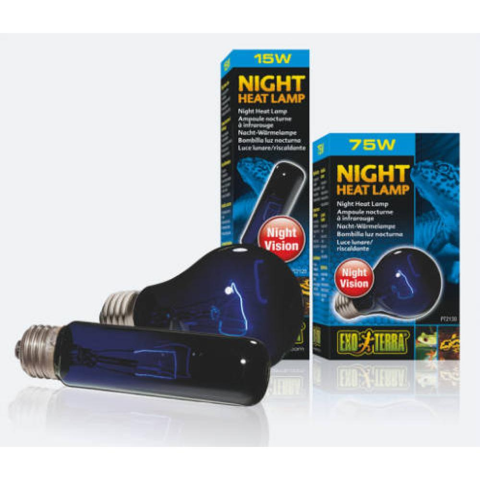 Exo Terra Night Heat Lamp - Éjszakai Fűtőlámpa - 75 W- Holdfénylámpa - szimulálja a természetes holdfényt- Tökéletes éjszakai megfigyeléshez- Biztosítja egy tórpusi éjszaka hőmérsékletét- Stimulálja a hüllők és kétéltűek párzási viselkedését- 24 órás ciklusban kombinálható a Daytime Heat Lamp vagy Repti Glo izzókkalAz izzó a természetes holdfényt szimulálja, lehetővé téve ezzel az éjszakai megfigyelést anélkül hogy megzavarnánk az állat nap-éj ci