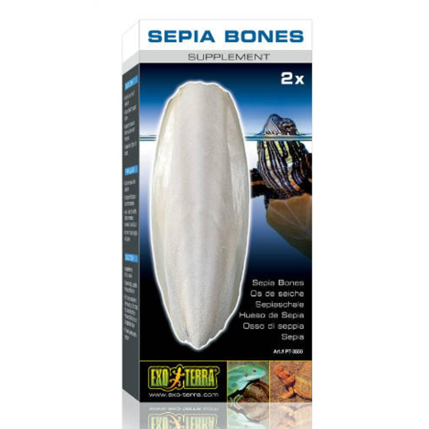 Exo Terra Sepia Bones / szépiacsont táplálékkiegészítőKiegészítő eledel hüllők és kétéltűek számára- Kitűnő kalciumforrás- Lebeg - ideális vízi teknősöknek- Segíti a vízi-, szárazföldi- és gyémántteknősök csőrének kopását- Minden fajta gyík számára is megfelelőAz Exo Terra szépiacsont egy kiváló kalciumforrás hüllőknek és kétéltűeknek. Használhatóak egészben, szárazföldi-, vízi- és gyémántteknősök kiegészítő kalciumforrásaként.