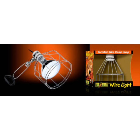 Exo-Terra Wire light Small - Drót lámpabúra terráriumba 150W (S)Porcelán lámpatest.Hőálló porcelán foglalat.250 Wattig alkalmazható.Ideális Kerámia Hősugárzók, higanygőz izzók vagy hagyományos izzók használatához.Az Exo Terra Wire lámpa hőálló porcelán foglalattal felszerelt, 250 Wattig alkalmazható lámpatest. A drótháló megelőzi a szükségtelen túlmelegedést. Az Exo Terra Clamp Lamp az egyedüli, mely az UL jóváhagyásával Kermáia Hősugárzóval együtt