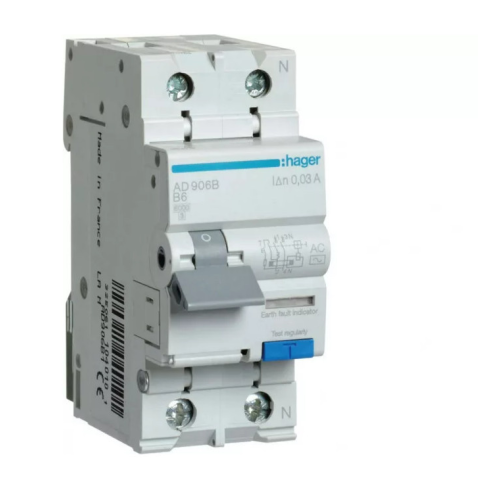 1 kép Hager AD906B Áramvédős kismegszakító 1P+N, B-6A, 30mA, 6kA, AC