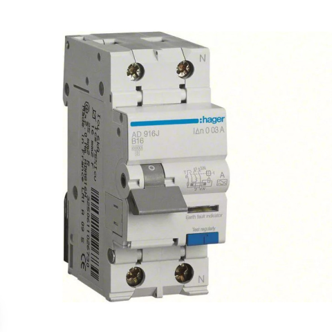 1 kép Hager AD916J Áramvédős kismegszakító 1P+N, B-16A, 30mA, 6kA, A
