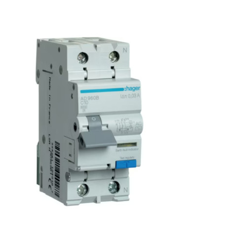 1 kép Hager AD960B Áramvédős kismegszakító 1P+N, C-10A, 30mA, 6kA, AC