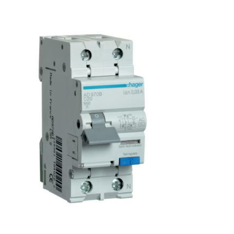 1 kép Hager AD970B Áramvédős kismegszakító 1P+N, C-20A, 30mA, 6kA, AC