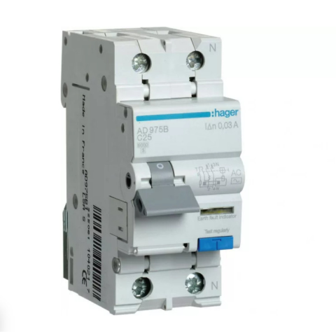 1 kép Hager AD975B Áramvédős kismegszakító 1P+N, C-25A, 30mA, 6kA, AC