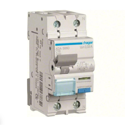 1 kép Hager ADA566D Áramvédős kismegszakító 1P+N, C-16A, 30mA, 10kA, A