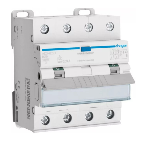 1 kép Hager ADX425D Áramvédős kismegszakító 3P+N, B-25A, 30mA, 10kA, A