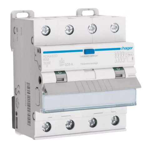 1 kép Hager ADX432D Áramvédős kismegszakító 3P+N, B-32A, 30mA, 10kA, A