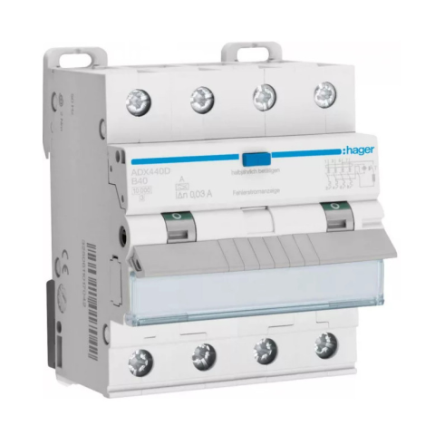 1 kép Hager ADX440D Áramvédős kismegszakító 3P+N, B-40A, 30mA, 10kA, A
