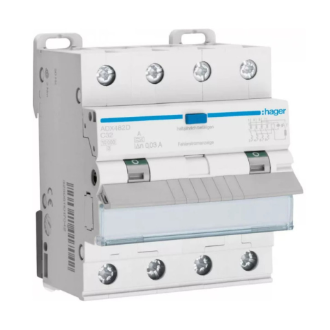 1 kép Hager ADX482D Áramvédős kismegszakító 3P+N, C-32A, 30mA, 10kA, A