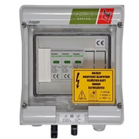 Inverterek DC csatlakozásához beköthető tokozott túlfeszültség-korlátozó. Átvezető csatlakozással a túlfeszültséglevezető a tokozaton belül csatlakozik a string aktív vezetőire. A napelemes ExPL-D...