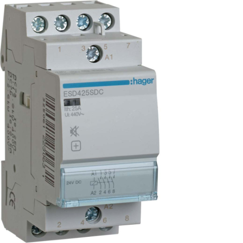 1 kép Hager ESD425SDC Csendes mágneskapcsoló, 4Z, 25A, 24V DC, moduláris