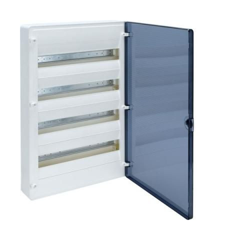 Kiselosztó PE/N-sínnel 63A műanyag 4x 18M falonkívüli fehér IP40 átlátszó teli ajtó Golf Hager