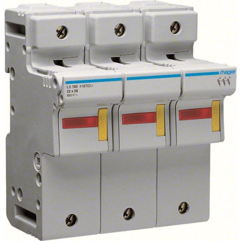 Hager LS703 Biztosítós szakaszoló, L58, 3P, 22x58mm, 125A, 6M