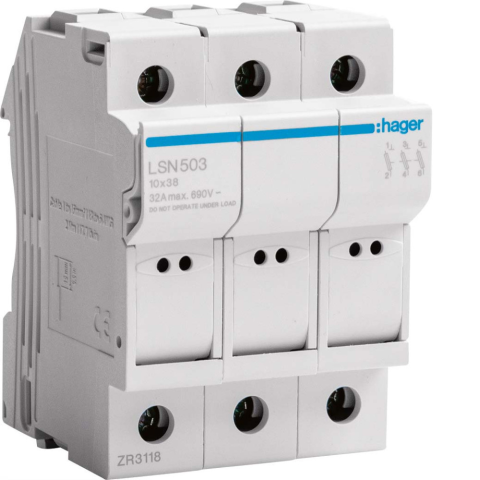 1 kép Hager LSN503 Olvadóbiztosítós szakaszoló 10,3x38 mm 3P 3M
