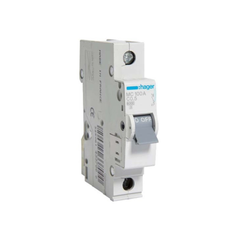 1 kép Hager MC100A Kismegszakító 1P, C-0,5A, 6kA/10kA, 1M