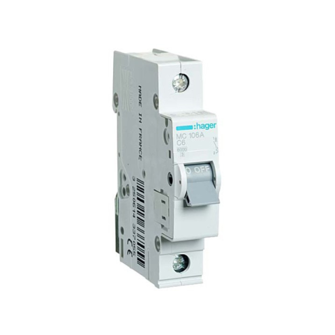 HAGER nagykatalógusHAGER MC106A általános leírása:A kismegszakítók más néven automaták az elektromos hálózatok egyik legfontosabb védelmi elemei. Feladatuk, hogy túlterhelés vagy rövidzárlat esetén automatikusan megszakítsák az áramkört, így megvédve az e