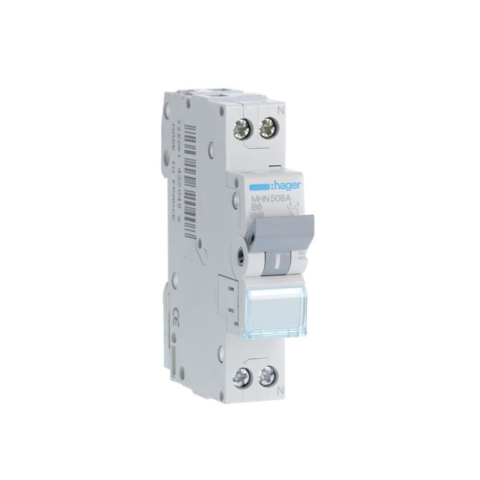 1 kép Hager MHN506A Kismegszakító 1P+N, B-6A, 4,5kA, 1M