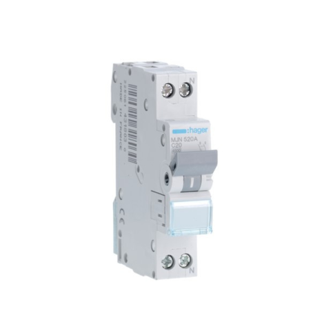 1 kép Hager MJN520A Kismegszakító 1P+N, C-20A, 4,5kA, 1M