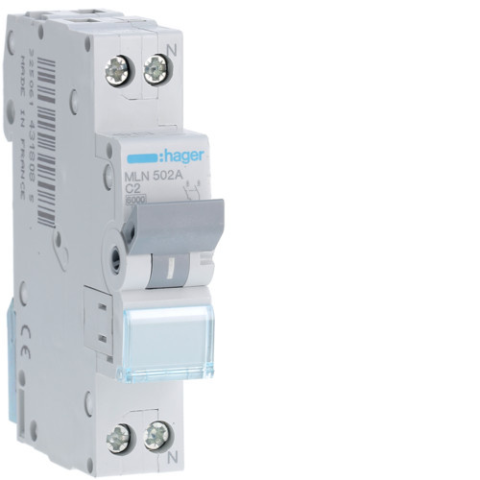 1 kép Hager MLN502A Kismegszakító 1P+N, C-2A, 6kA, 1M