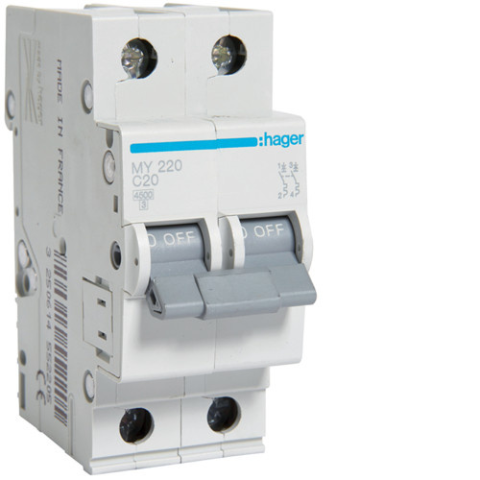 HAGER nagykatalógusAz egyszerűen és biztonságosan szerelhető Hager modulkészülékek nagymértékben hozzájárulnak az Ön munkájának megkönnyítéséhez és a biztonságos villanyszereléshez.HAGER MY220 általános leírása:A kismegszakítók más néven automaták az elek