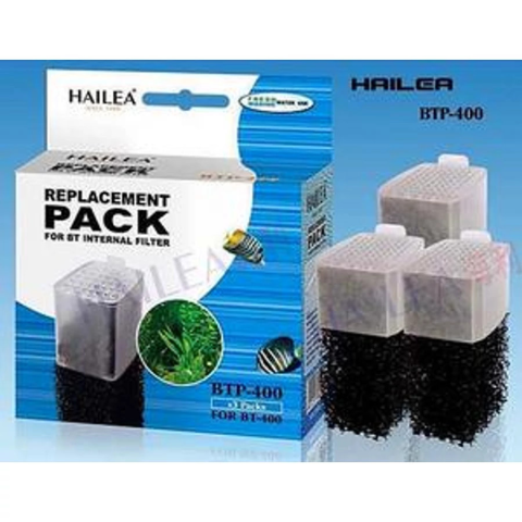 Hailea szűrőbetét akvárium szűrőkhöz BTP-400 Szűrőpatron csere a BTP sorozatú szűrőihez. Mindegyik készlet tartalmaz egy szivacsszűrőt (mechanikus szűrés) és egy aktív szenet (kémiai szűrés). Kérjük, vegye figyelembe, hogy az egyes csomagokban lévő készl