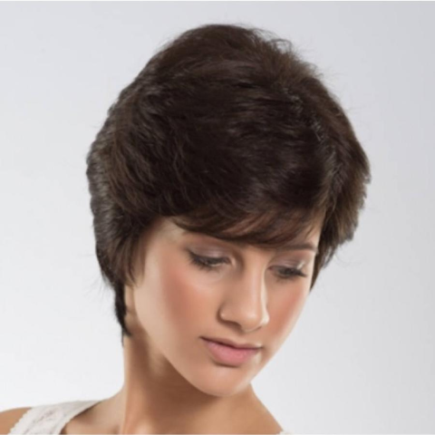 - Rövid, egyenes fazonú paróka előre befésült frufruval és oldalt arcba fésülhető tincsekkel- A haj hátul a nyakat szabadon hagyja, oldalt a füleket teljesen fedik- I. osztályú szintetikus anyagból- Mérete felnőtt fejre készült, állítható- Színe sötétbarna - középbarna mix (4/6/2)