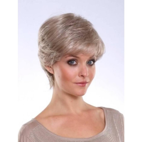 - Rövid, egyenes fazonú paróka előre befésült frufruval és oldalt arcba fésülhető tincsekkel- A haj hátul a nyakat szabadon hagyja, oldalt a füleket teljesen fedik- I. osztályú szintetikus anyagból készül- Felnőtt fejformára készült, állítható- Sötét szőke (50%), ősz (50%) szín mix