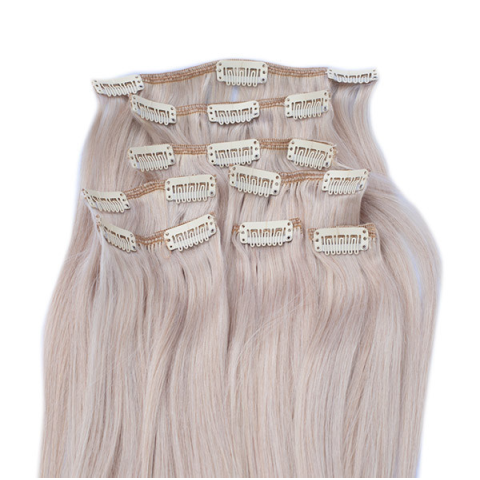 1 kép HairExtensionShop Csatos Emberi Póthaj Hamvas Világos Platinaszőke Színben 60cm (Szín #60ASH)