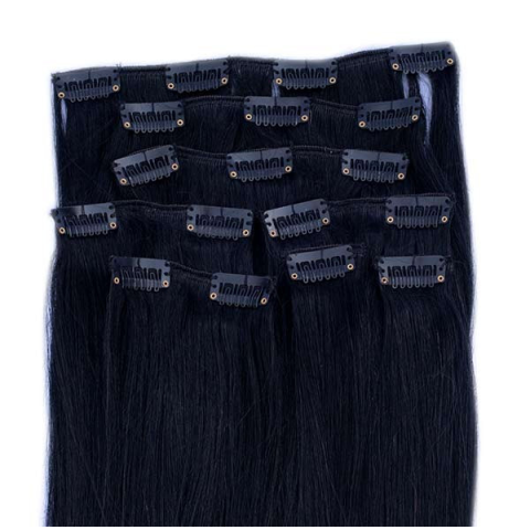 1 kép HairExtensionShop Csatos Emberi Póthaj Koromfekete Színben 40cm (Szín #1)