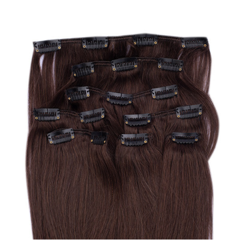 1 kép HairExtensionShop Csatos Emberi Póthaj Sötétbarna Színben 50cm (Szín #4)