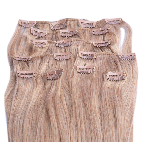 1 kép HairExtensionShop Csatos Emberi Póthaj Világos Aranyszőke Színben 60cm (Szín #18)