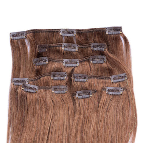 1 kép HairExtensionShop Csatos Emberi Póthaj Világosbarna Színben 50cm (Szín #8)