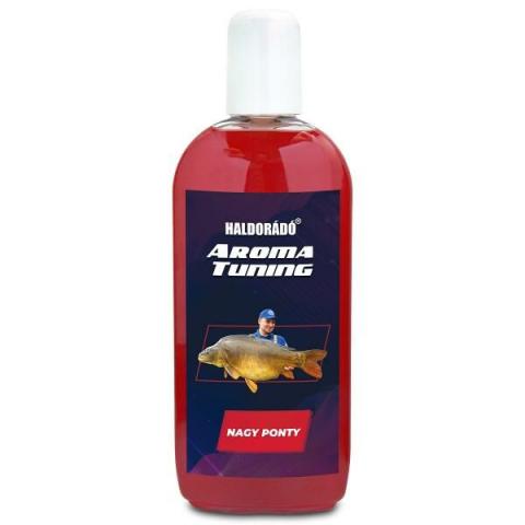 Haldorádó Aroma Tuning Nagy Ponty piros színű, sűrű, kifejezetten édes, gyümölcsös jellegű, csipetnyi titokkal megfűszerezett kevert aroma, amely főként a céltudatos pontyhorgászatban bizonyította rendkívüli fogósságát és szelektáló hatását. Az emberi orr számára is finomnak, kellemesnek tűnik, de jobban beleszagolva érződik csak ki, hogy mennyire tömény A különleges aroma a Haldorádó etetőanyag családból a Nagy Ponty, a Red Tuning pelletek közül szint