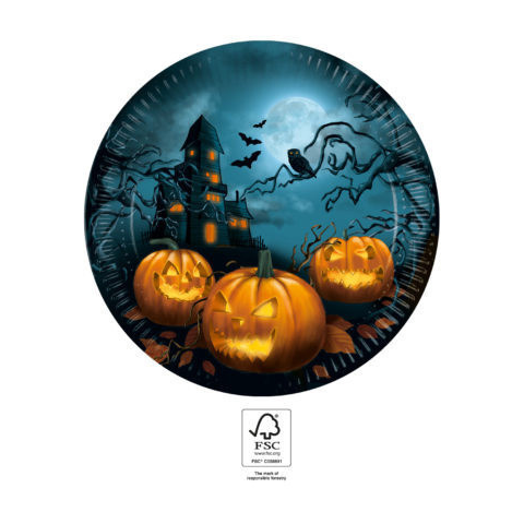 Halloween papírtányér 8 db-os 23 cm FSC 8 db tányér/csomag Anyaga: papír FSC (Forest Stewardship Council)